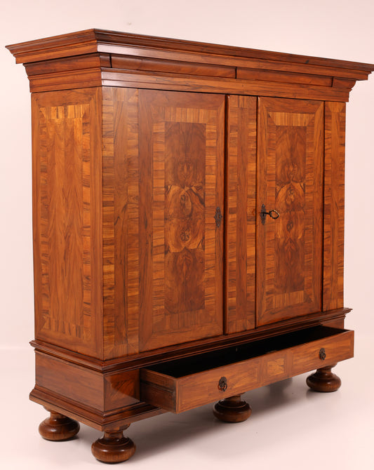 Barocke Aufsatzkommode in Nussbaum intarsiert um 1760