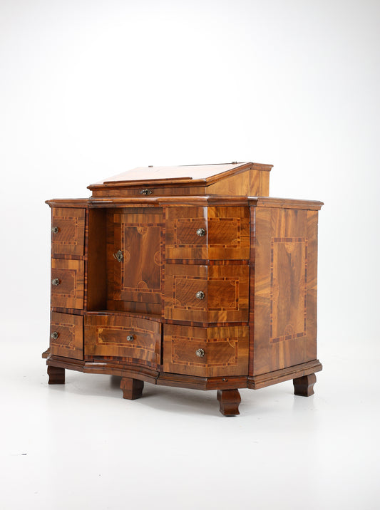 Barocke Schreibkommode Nussbaum intarsiert Oberitalien 1770