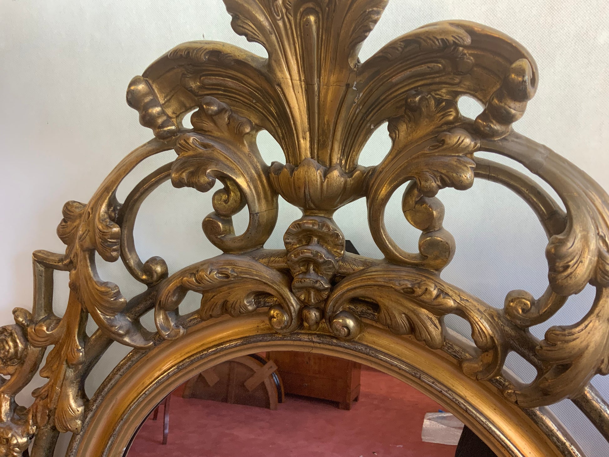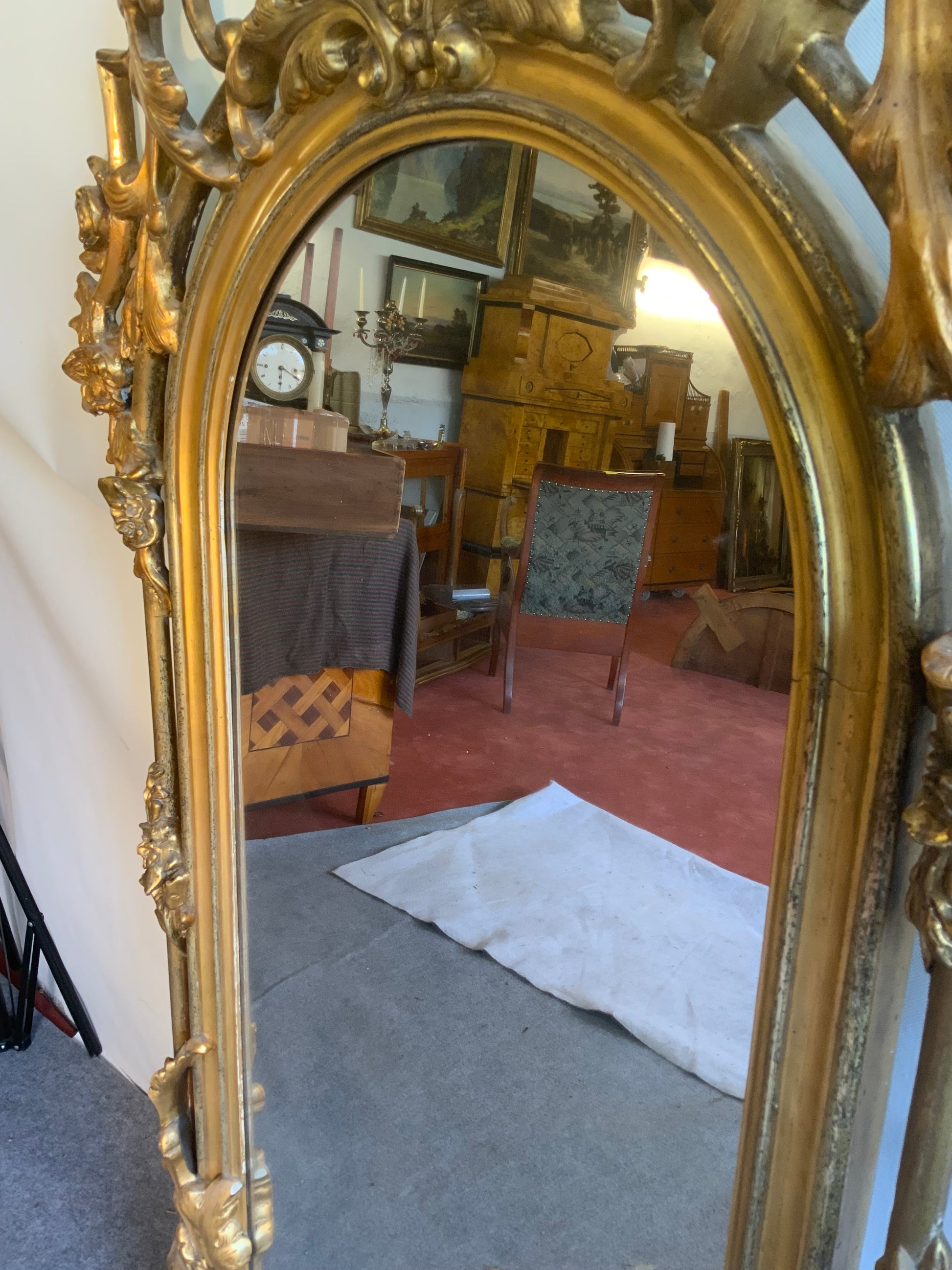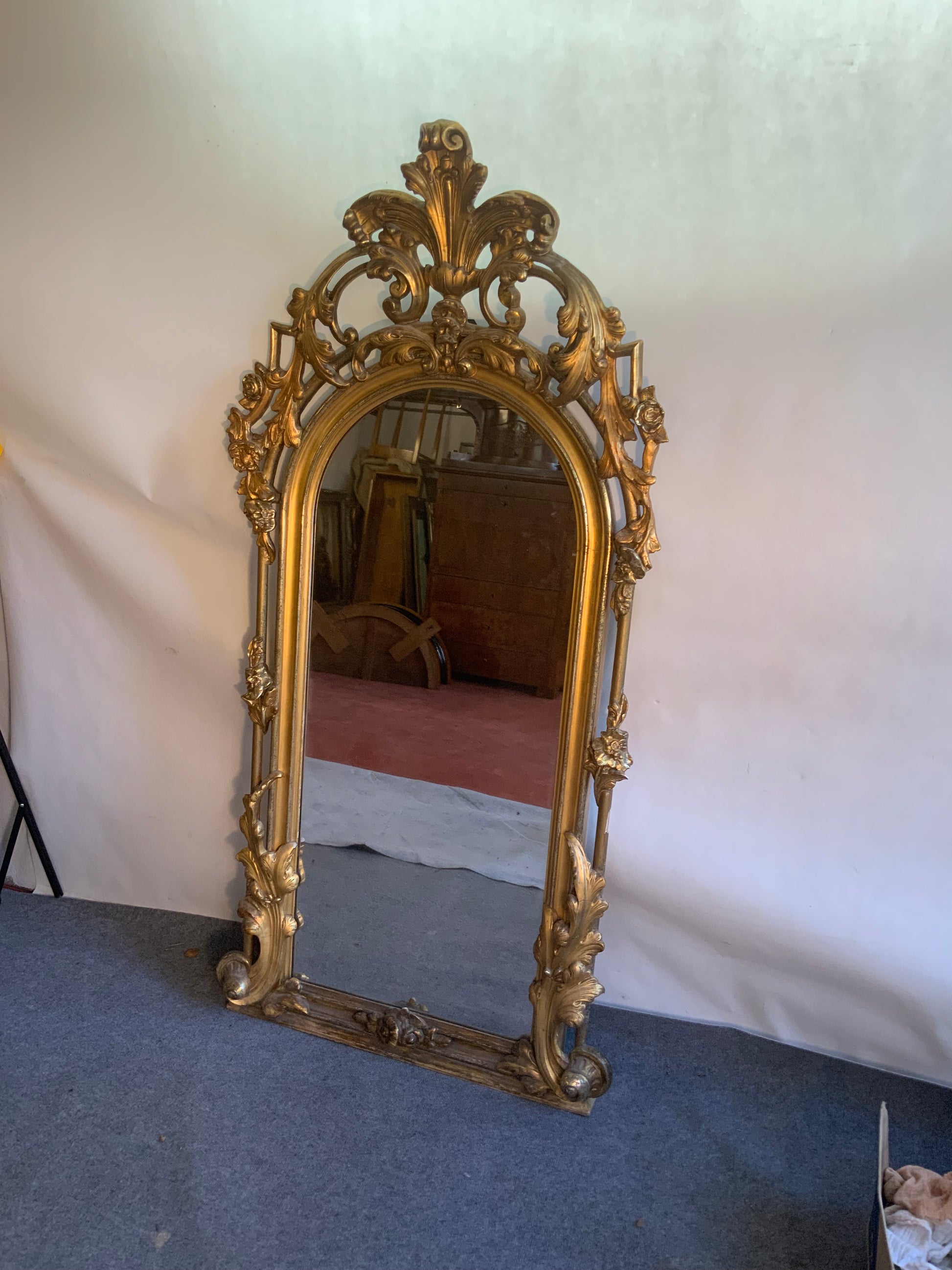 Hier handelt es sich in Art und Ausführung ein wahrhaftig königliches Stück , es Wurde Stuck auf Holz aufgebracht , und in einem prächtigen Goldton gehalten , der Spiegel wurde im Barock - Rokoko Stil gehalten , mit einer Höhe von 180 cm ist er groß genug um ein Ganzköperbild zu erreichen , in der Breite mißt er 90 cm und in der Tiefe 6 cm Ein wahrhaft majestätischer Spiegel der alle Blicke auf sich zieht und ein Statement in jeder Einrichtung setzt . Sehr ansprechende Dekorelemente unterstreichen den zeitlos barocken Stil .