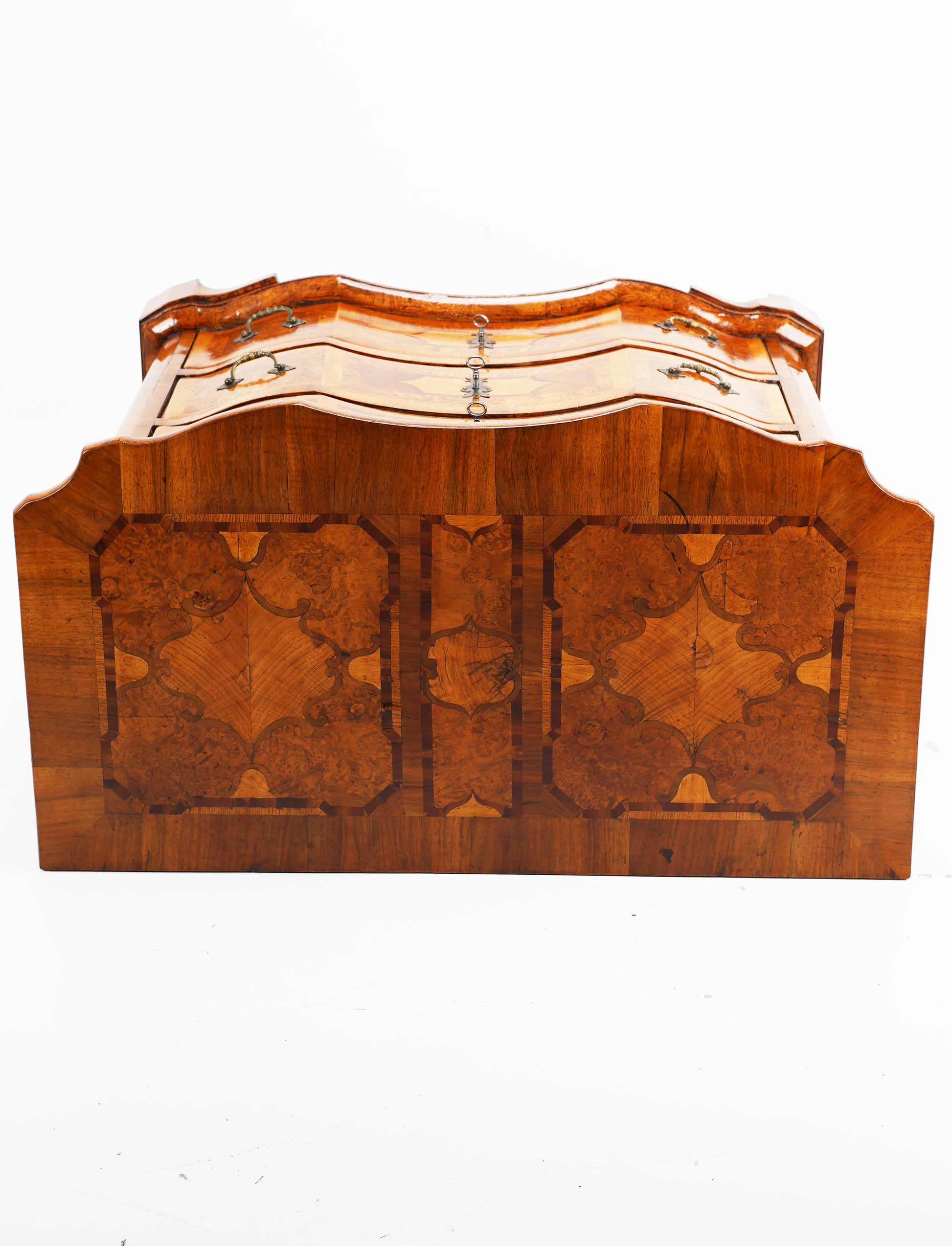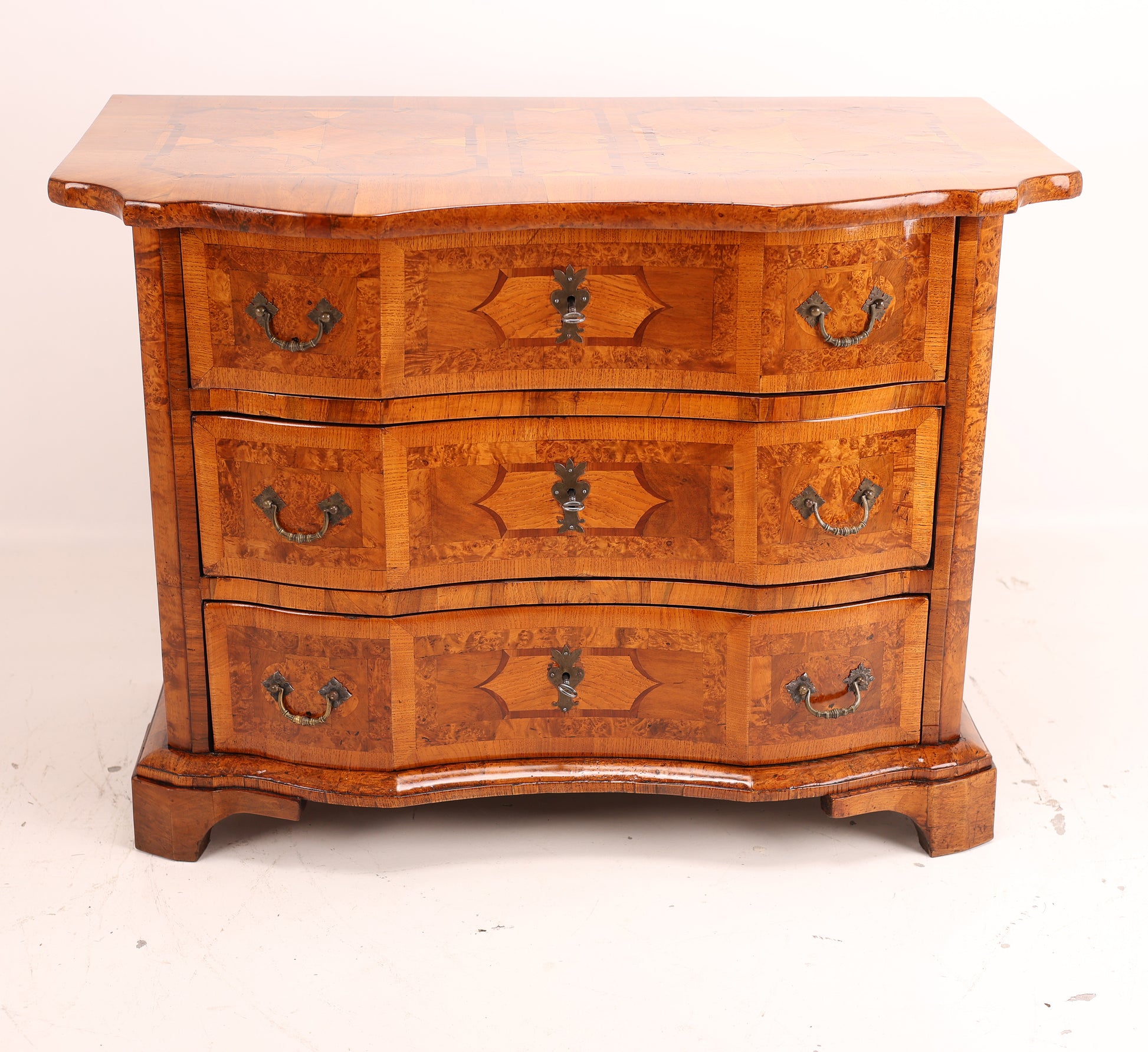 Feine Barockkommode in Nussbaum und Ahorn um 1750